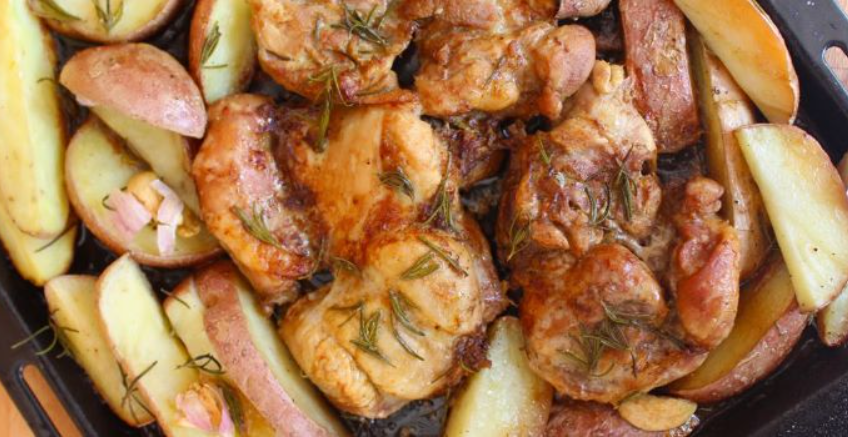 Frango assado com batatas rústicas