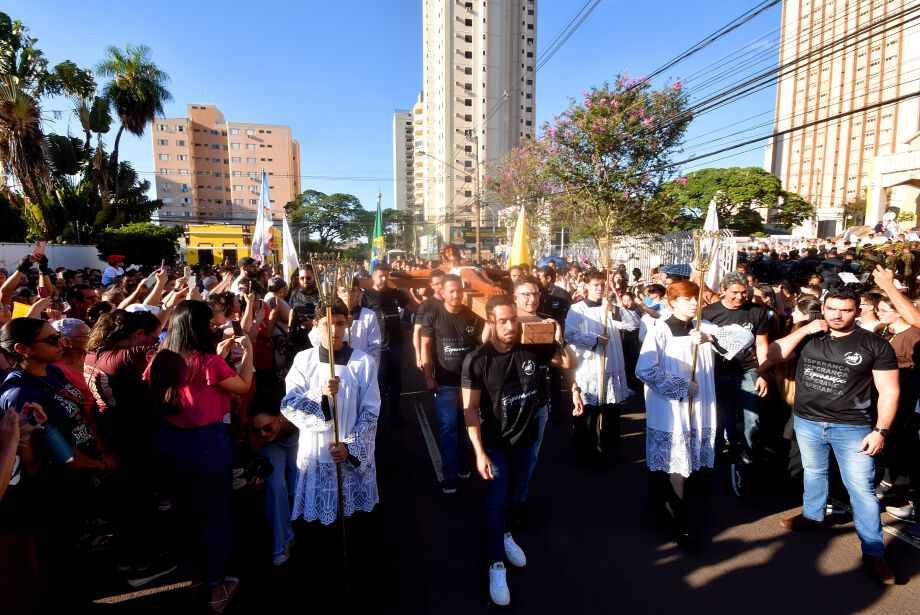 Neste ano, a procissão do considerado “Ano Santo” foi iniciada às 16h30 na Paróquia São José e seguiu até a Catedral Nossa Senhora Da Abadia e Santo Antônio de Pádua, local da Santa Missa.