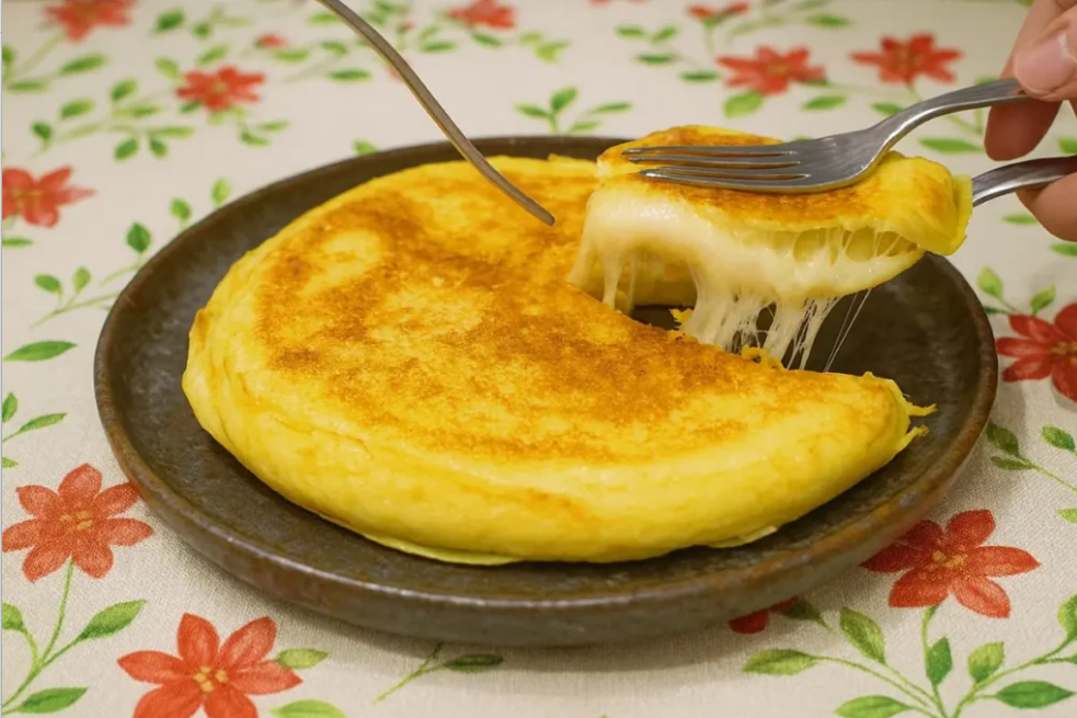 Tem dias em que o café da tarde acontece meio sem aviso: bate a fome, o dia foi longo e ninguém quer ligar o forno. Esse pão de queijo de frigideira nasce assim — rápido, quentinho, com aquele barulhinho bom de queijo derretendo. É conforto imediato, quase um abraço em forma de lanche.