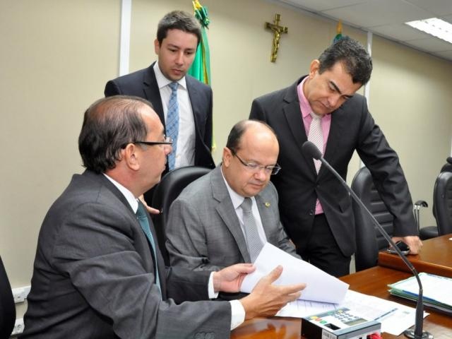 Deputados Zé Teixeira (DEM), José Carlos Barbosa (DEM), Cabo Almi(PT) e Onevan de Matos (PSDB), durante sessão (Foto: Luciana Nassar/ALMS)Serviços – Já Cabo Almi (PT) apresentou projeto que proíbe o corte de fornecimento de água, energia elétrica e serviços de telefonia, nas sextas-feiras, vésperas de feriado e domingo. A justificativa é que estes são considerados essenciais e nestas datas, não tem como ele fazer o pagamento bancário da dívida, ou conseguir o retorno imediato dos serviços.